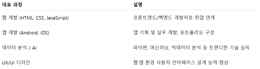 📌 수료 후 진로: 개발자, 데이터 분석가, 디지털 마케터, UI/UX 디자이너